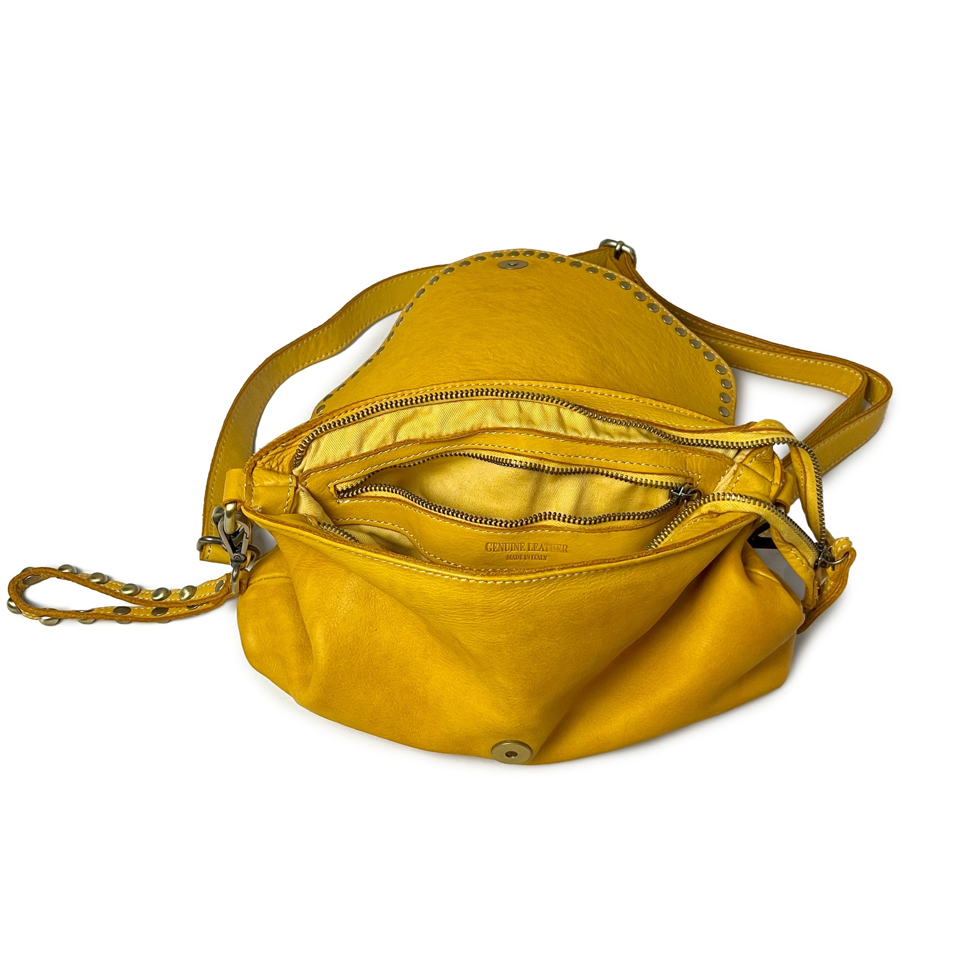• Finest Italian calfskin leather, garment-dyed and washed